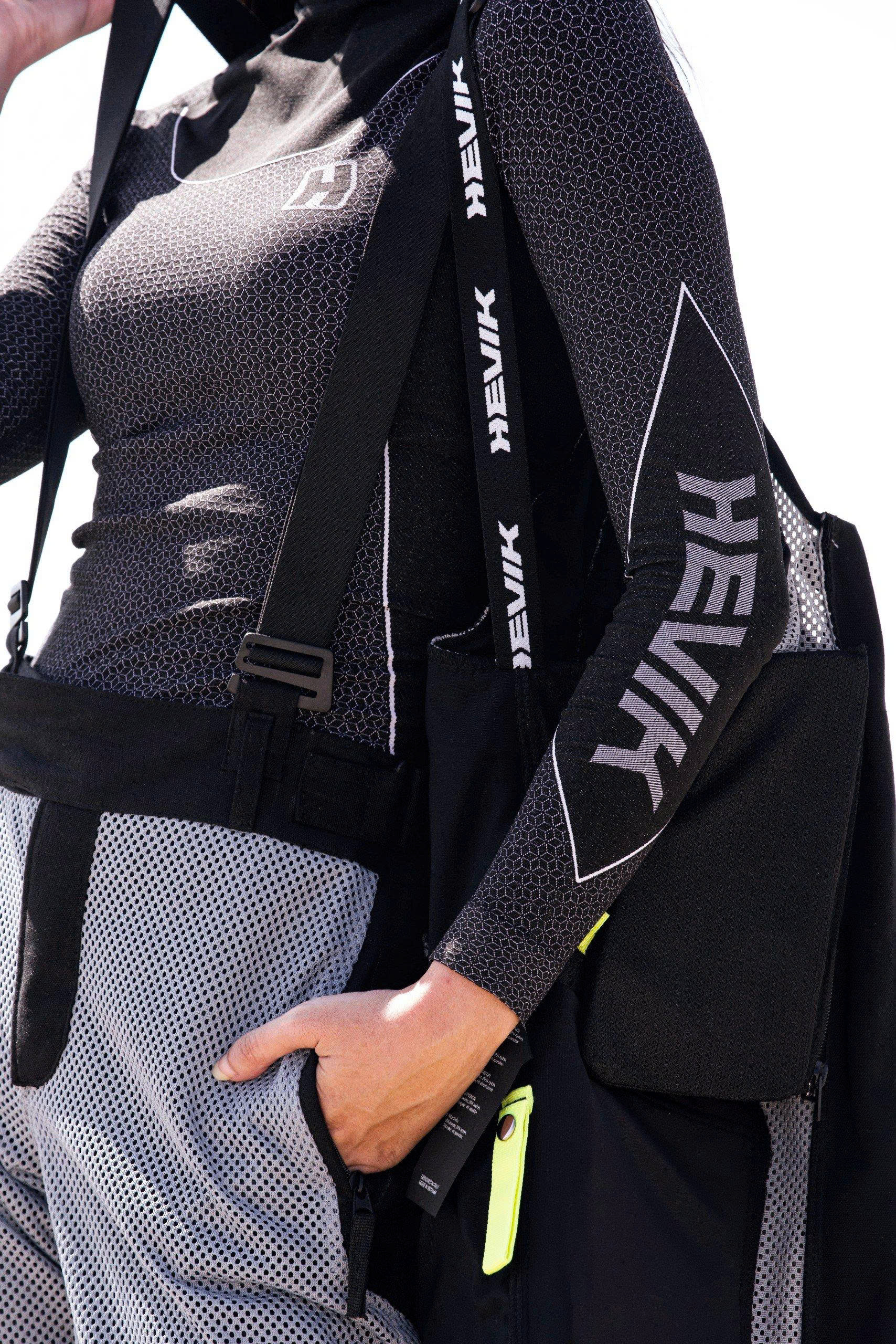 Hevik HVU01 NASHIRA mang phong cách áo thể thao hiện đại, với đường may phẳng giúp giảm ma sát khi mặc cùng áo khoác giáp. Logo hevik in nổi bật ở ngực và tay áo tạo điểm nhấn mạnh mẽ, tôn lên chất “biker” đầy cá tính.